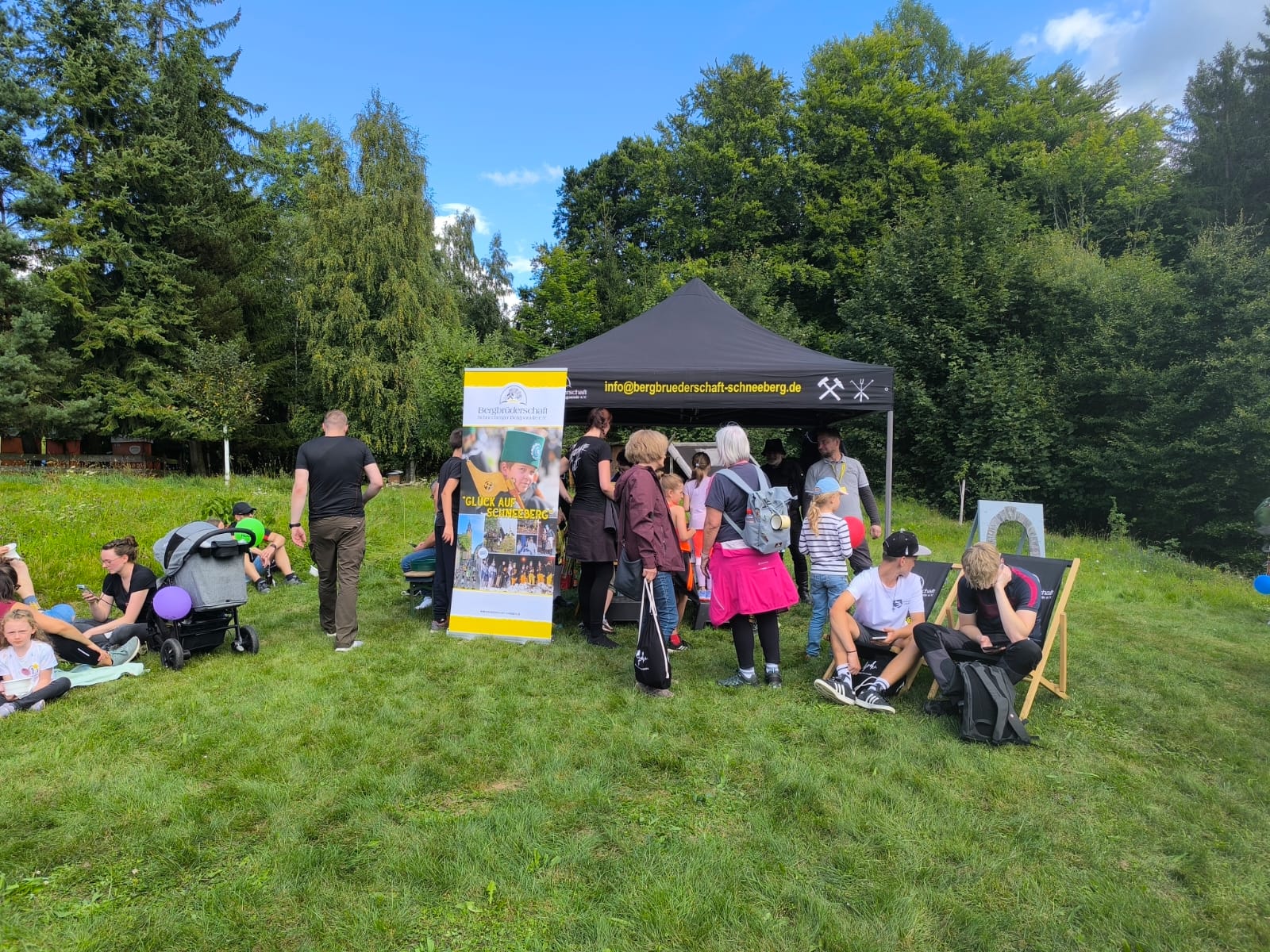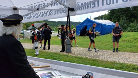 Der BTV Wismut und die Knappschaft Schwarzenberg informierten Wanderer am Infostand des SLV beim Besucherbergwerk Zinnkammern Pöhla direkt an der Strecke. Bereits ab 10:30 Uhr pilgerten hunderte Wanderfreunde zum Stempel-Stopp – eine ideale Gelegenheit, über die Vereine zu informieren, Fotos zu machen und Prospekte zu verteilen. Die Bergbrüderschaft „Schneeberger Bergparade“ e.V. ergänzte das Angebot und begrüßte Wanderer in Waschleithe beim Berggasthof "Haus Fürstenberg" mit Mitmachaktionen. So vertraten drei Vereine des Sächsischen Landesverbandes der Bergmanns-, Hütten- und Knappenvereine Traditionen und Brauchtum der Region. Hunderte Prospekte und Broschüren fanden Verbreitung; zahlreiche Fotos dokumentierten das fröhliche Miteinander.