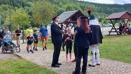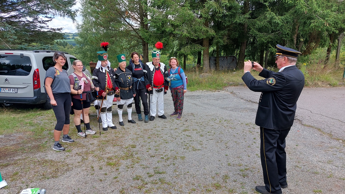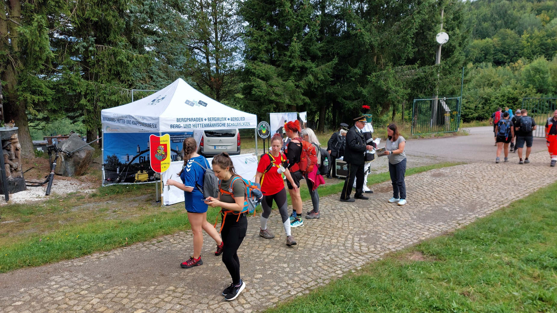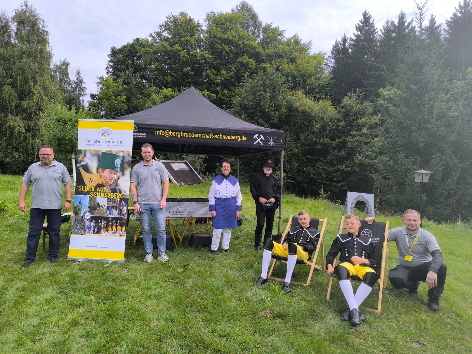 Der BTV Wismut und die Knappschaft Schwarzenberg informierten Wanderer am Infostand des SLV beim Besucherbergwerk Zinnkammern Pöhla direkt an der Strecke. Bereits ab 10:30 Uhr pilgerten hunderte Wanderfreunde zum Stempel-Stopp – eine ideale Gelegenheit, über die Vereine zu informieren, Fotos zu machen und Prospekte zu verteilen. Die Bergbrüderschaft „Schneeberger Bergparade“ e.V. ergänzte das Angebot und begrüßte Wanderer in Waschleithe beim Berggasthof "Haus Fürstenberg" mit Mitmachaktionen. So vertraten drei Vereine des Sächsischen Landesverbandes der Bergmanns-, Hütten- und Knappenvereine Traditionen und Brauchtum der Region. Hunderte Prospekte und Broschüren fanden Verbreitung; zahlreiche Fotos dokumentierten das fröhliche Miteinander.